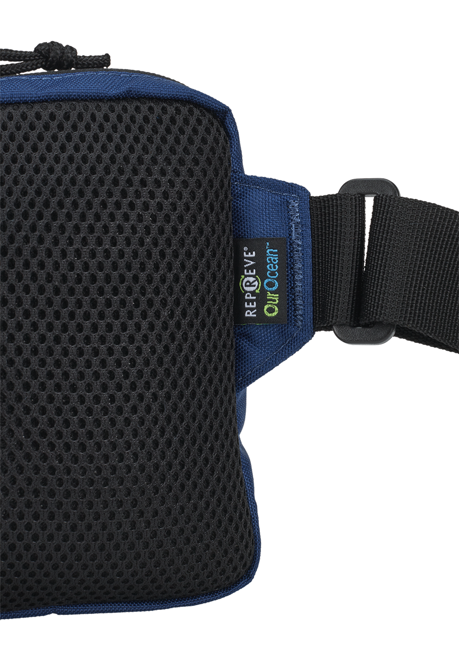 600D Polyester aus REPREVE® Our Ocean™ (aus recyceltem Ozeanplastik). Innenmaterial aus 70D Polyester aus REPREVE® (aus recyceltem Plastik)