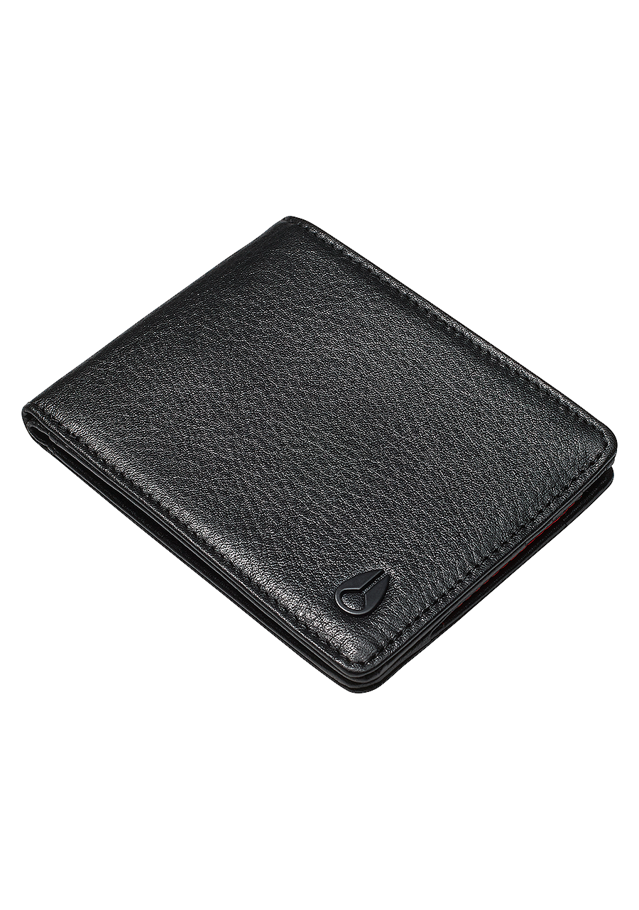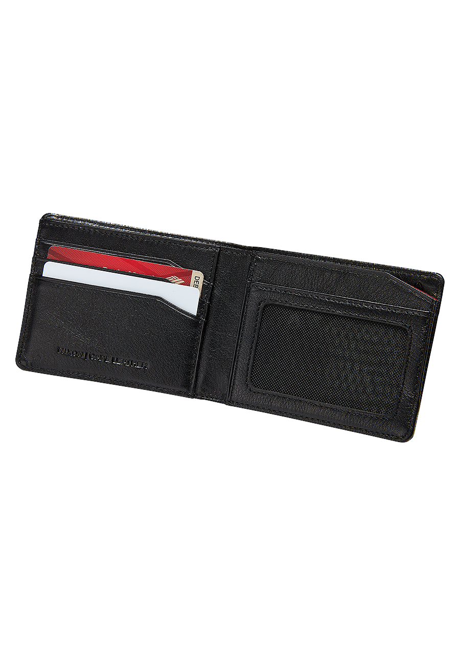 Portemonnaie aus 100 % echtem Leder mit geprägtem Inneren. Leicht zugängliches Geldscheinfach, Ausweisfenster aus Mesh und spezielle Logoniete aus Metall vorne.