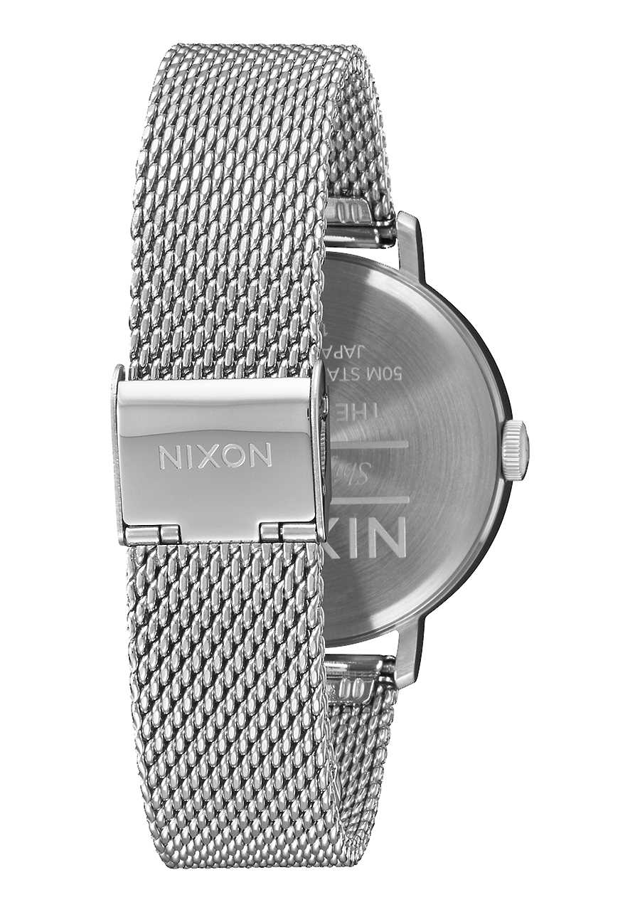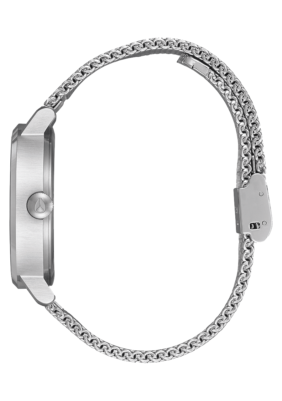 17mm maßgeschneidertes massives Milanaise-Armband aus Edelstahl mit Edelstahl-Sicherheitsverschluss und Schnellverstellfunktion für die Größe.