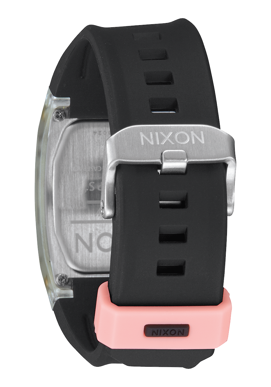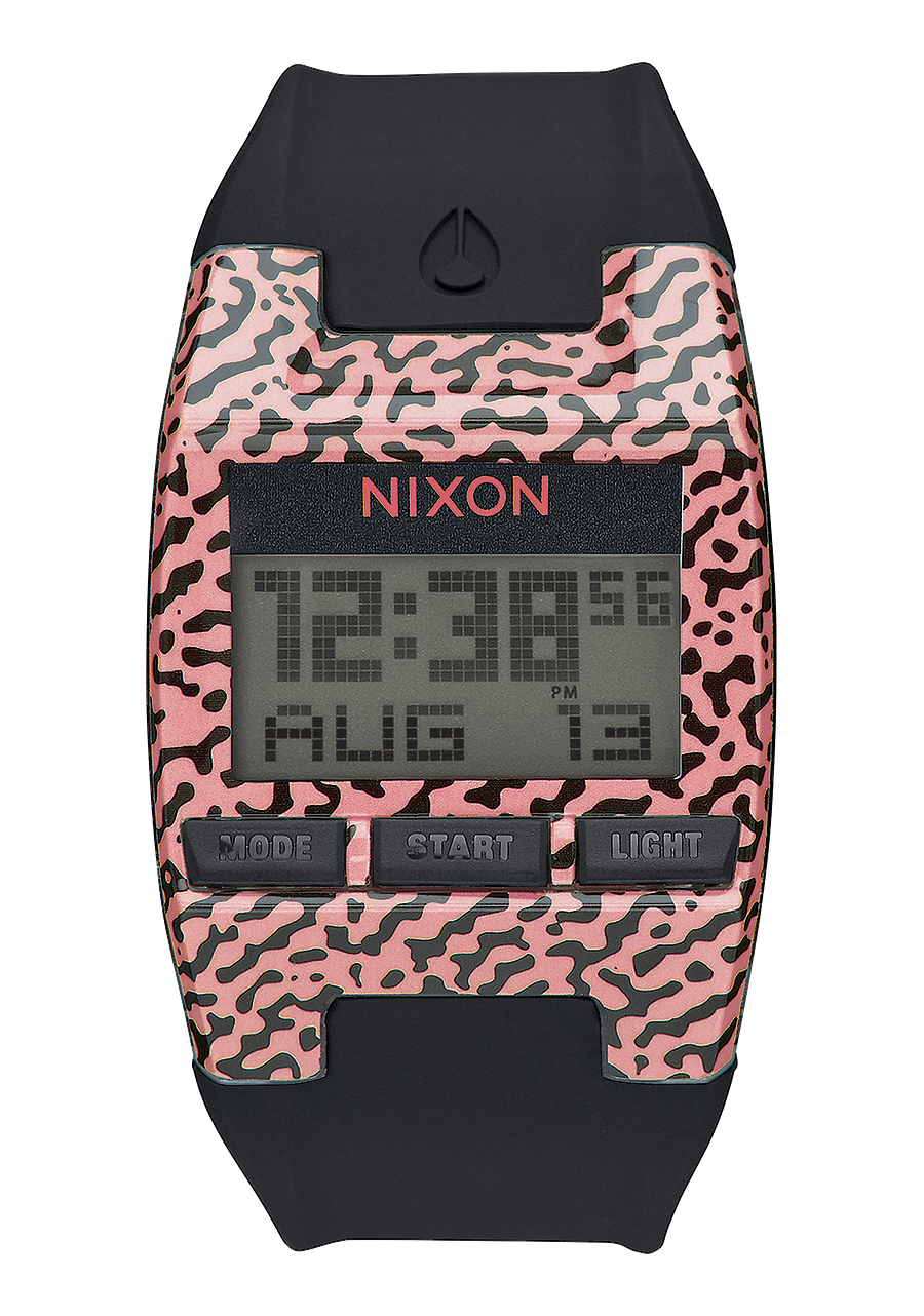 Das Display ist entweder ein positives oder negatives LCD und verfügt über eine individuell gefärbte Leiterplatte sowie einen maßgeschneiderten Batteriekontakt mit NIXON-Logo.