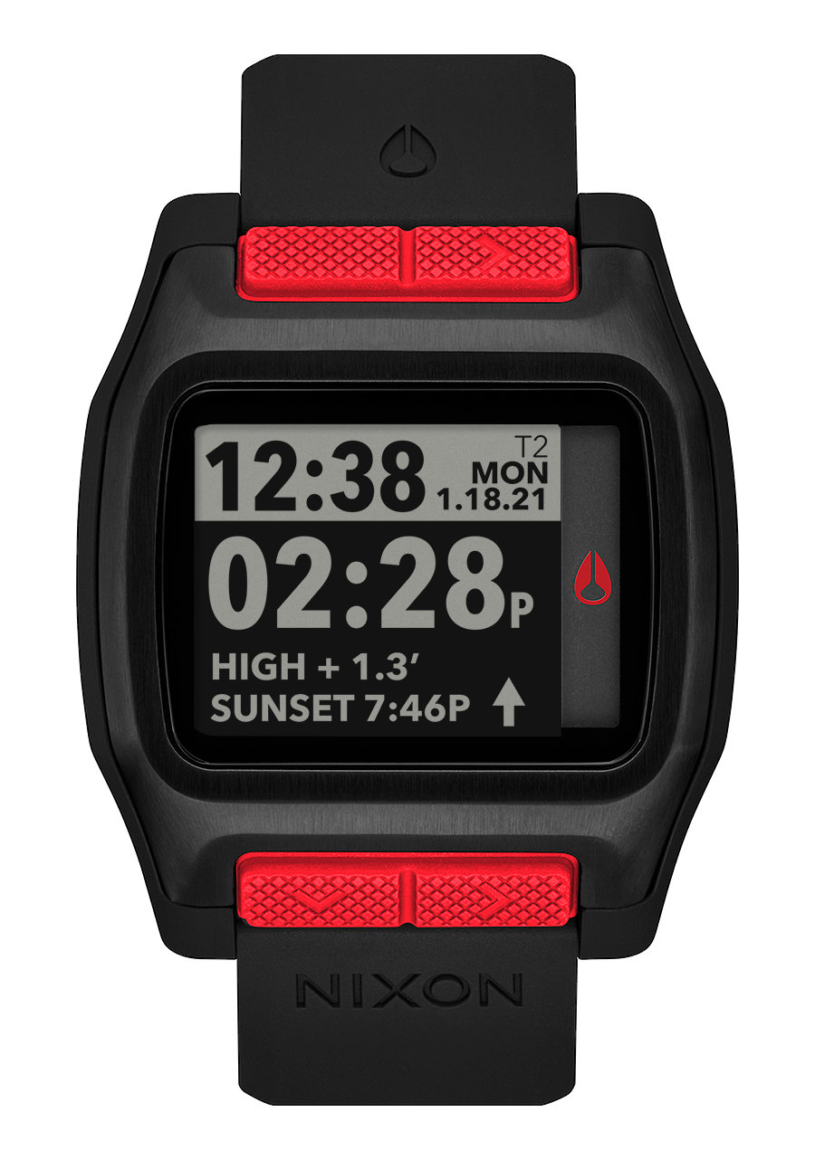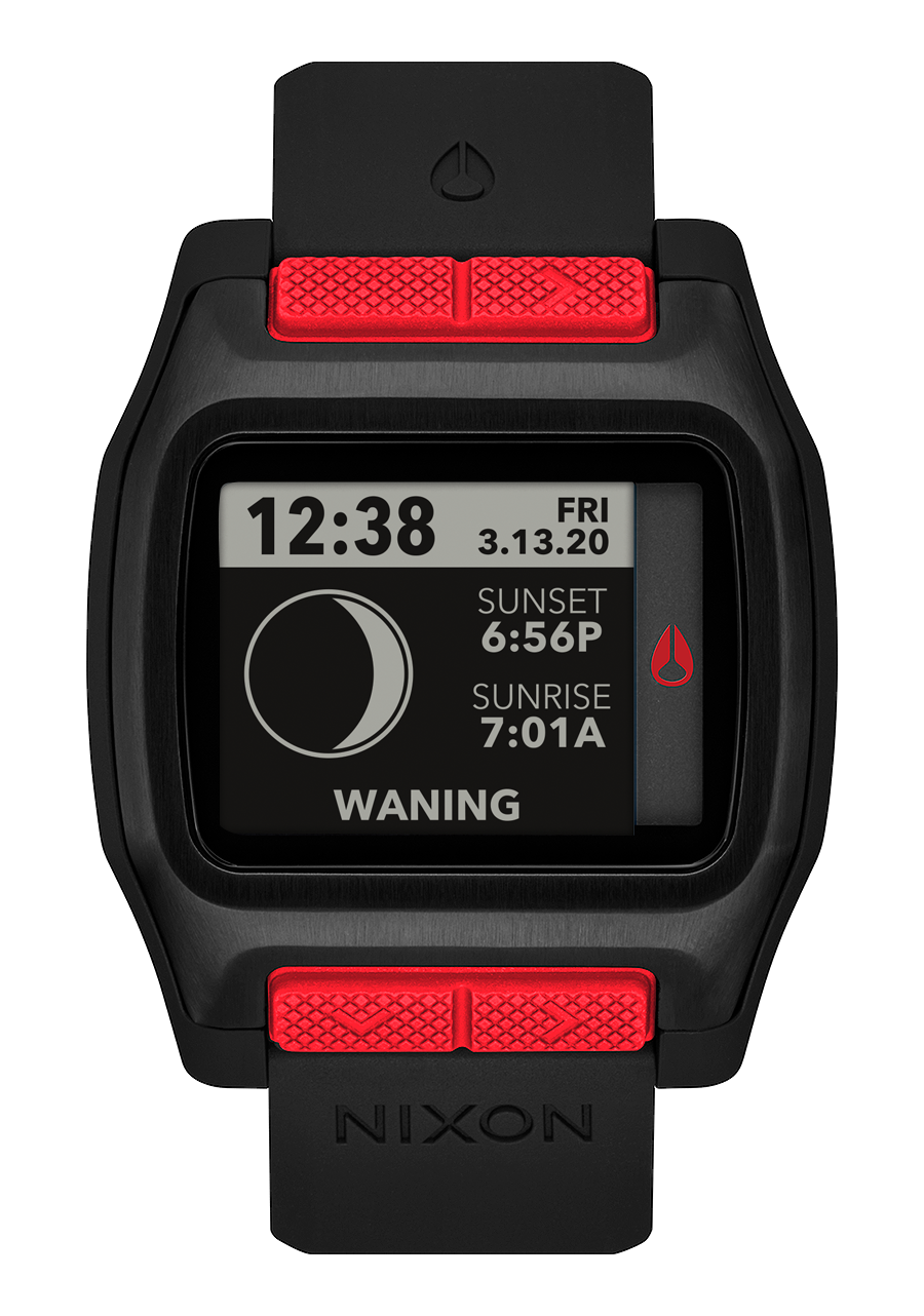 Maßgeschneidertes digitales Modul mit hochauflösendem MLCD mit Frontlicht, 550 vorprogrammierten Strandstandorten mit präzisen Gezeiten-, Sonnen- und Monddaten, Chronograph mit Aktionszeitstempel und Countdown-Timer.
