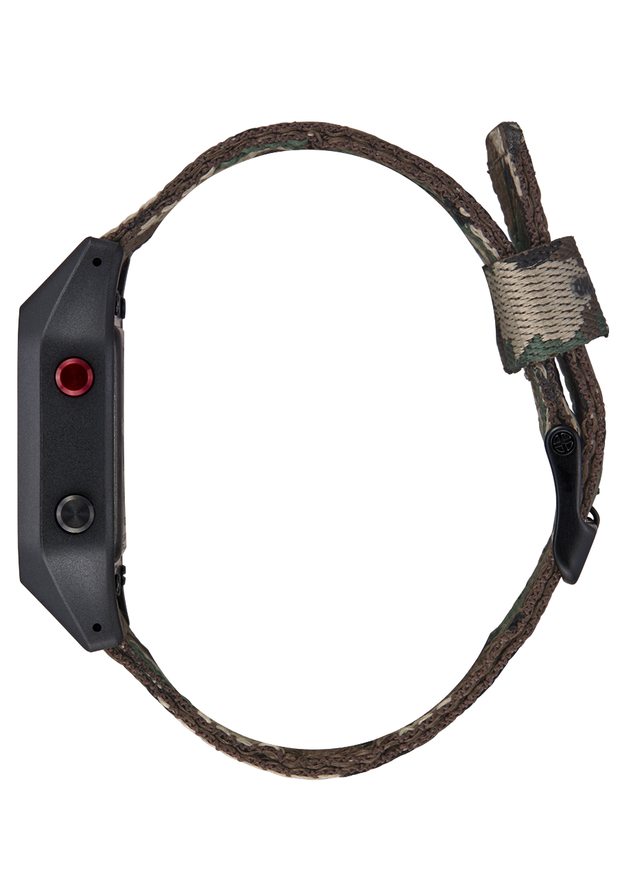 Das Mantra „Ride the Best“ erscheint auf dem Zifferblatt, während ein anpassbares Display-Layout es ermöglicht, zwei Funktionen gleichzeitig anzuzeigen. Zu den Funktionen gehören: Uhrzeit, Tag/Datum mit automatischem Kalender bis 2099, Chronograph mit 1/100-Sekunden-Auflösung, Timer und Alarm. Ein Camouflage-Armband aus recyceltem PET sorgt für Nachhaltigkeit und bleibt dabei komfortabel, egal wie intensiv die Session ist.
