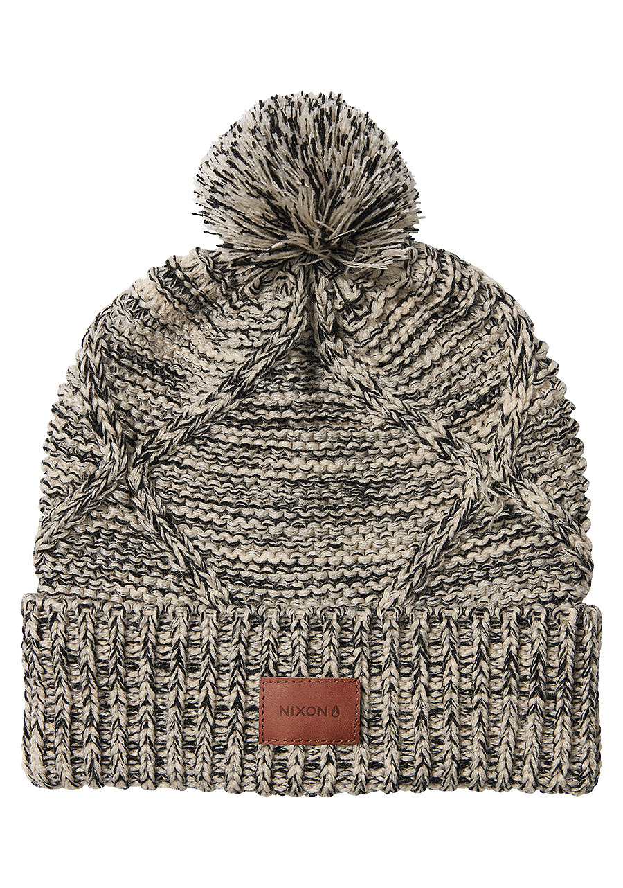 Diese lange Zopfstrickmütze mit Bommel steht ganz im Zeichen des Après-Ski. Der weite Strick sorgt für einen legeren Look. Die Mütze verzichtet aber dank geprägtem Lederpatch auf dem Umschlag nicht auf Eleganz. Wir sehen uns in der Hütte!