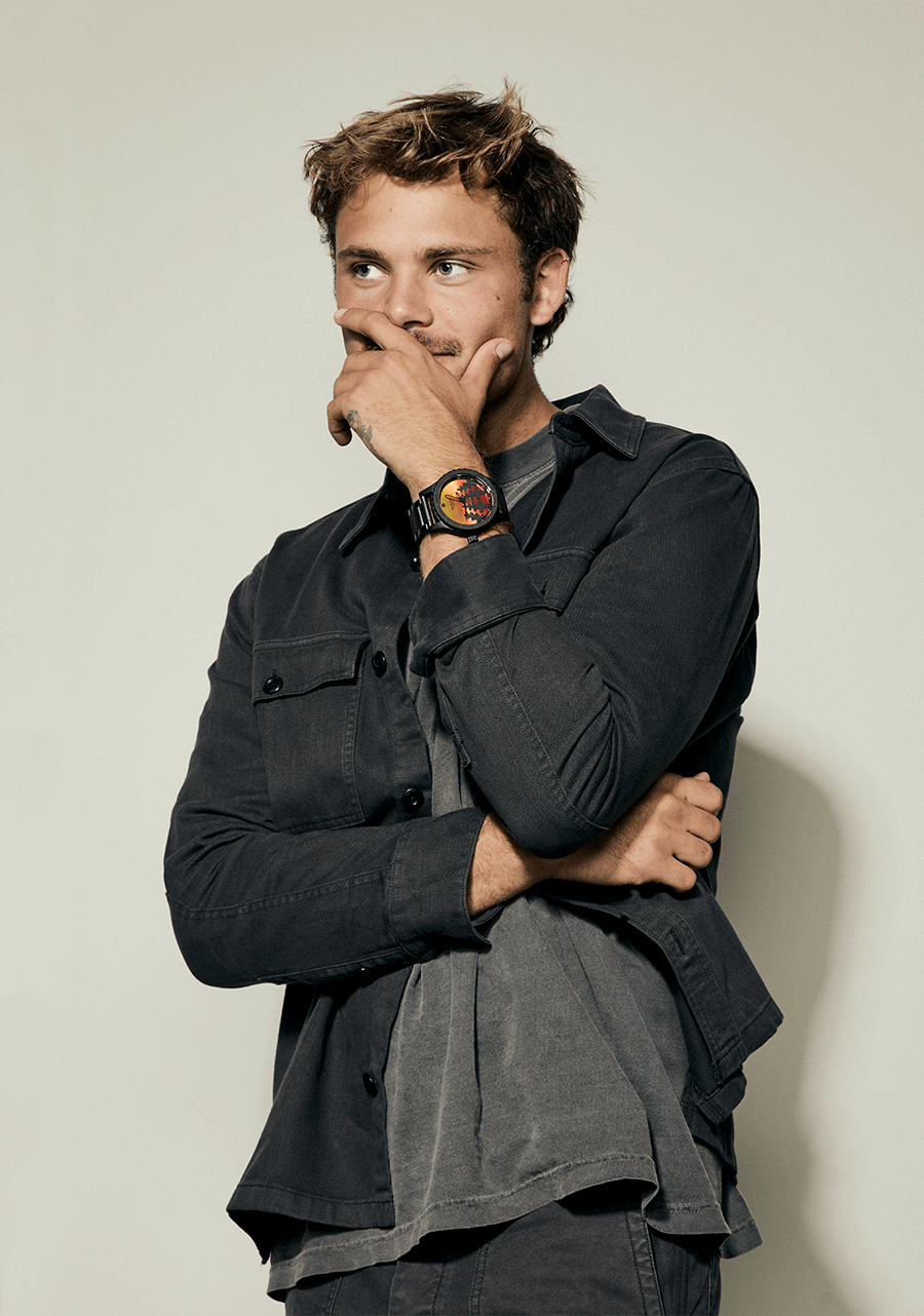 Das Zifferblatt ist von einem konkaven Zifferblattring mit individuellem Albumcover und maßgefertigten Zeigern umgeben.