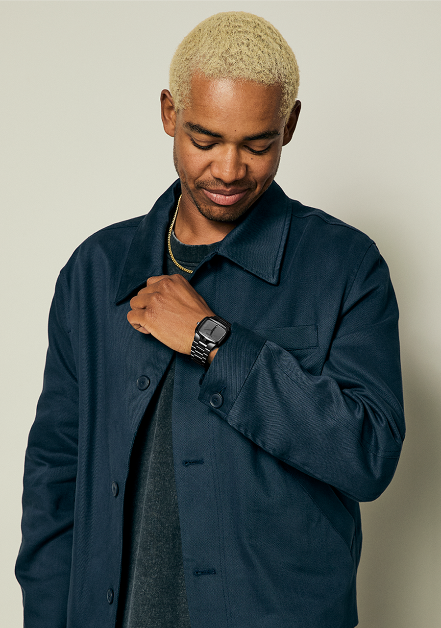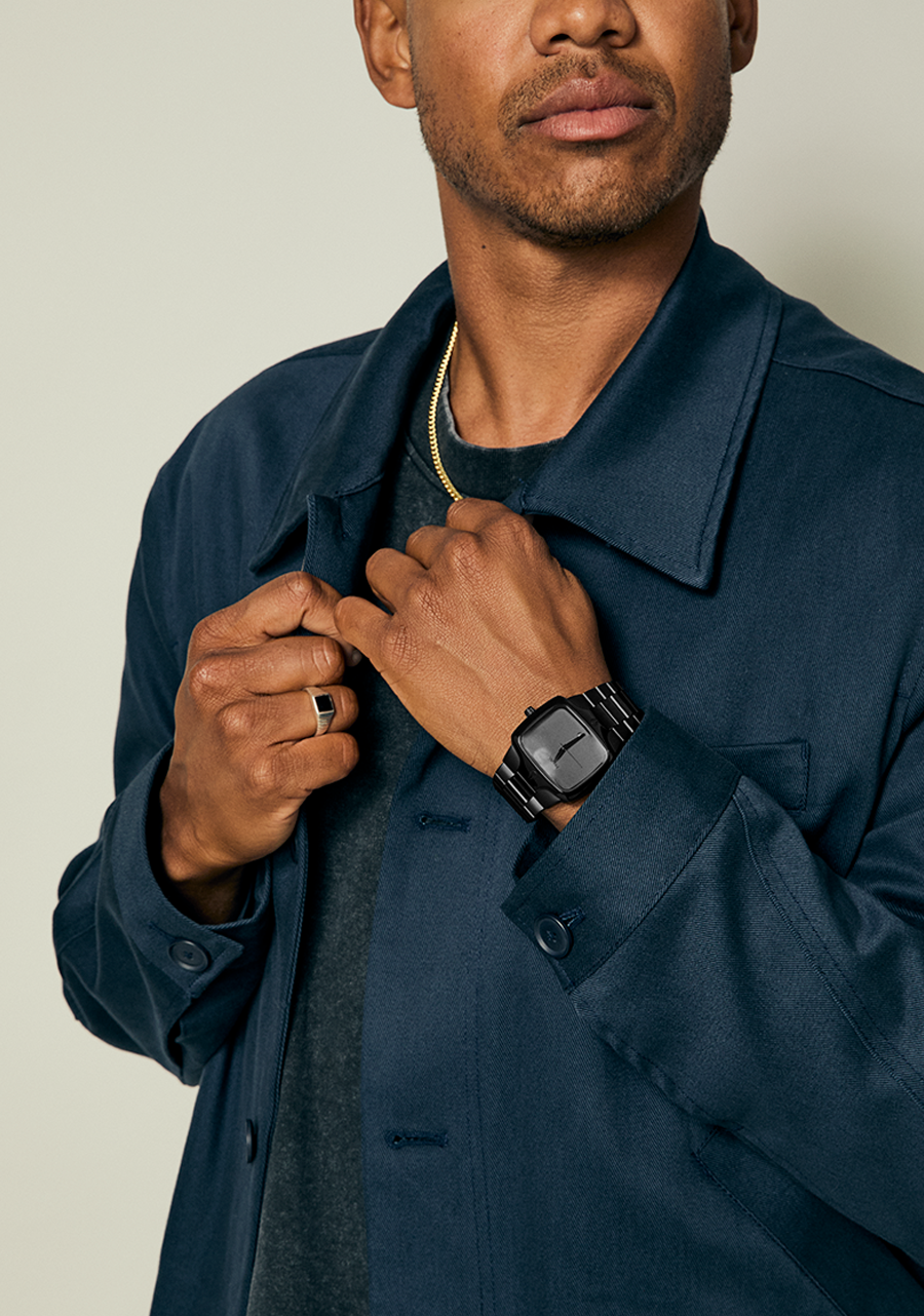 Das Zifferblatt wird von einem konkaven Zifferblattring umgeben und verfügt über einen echten Diamanten auf der 6-Uhr-Position sowie speziell geformte Zeiger.