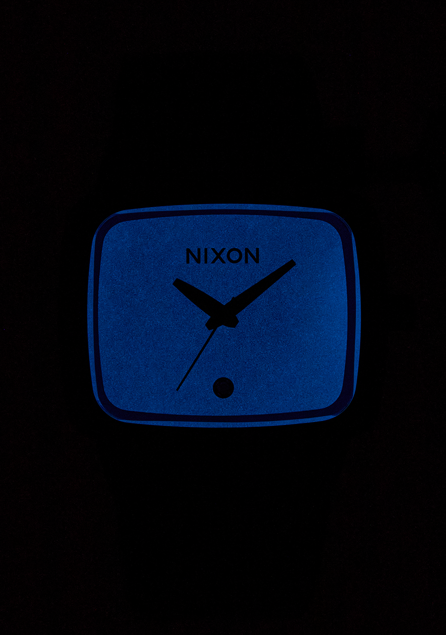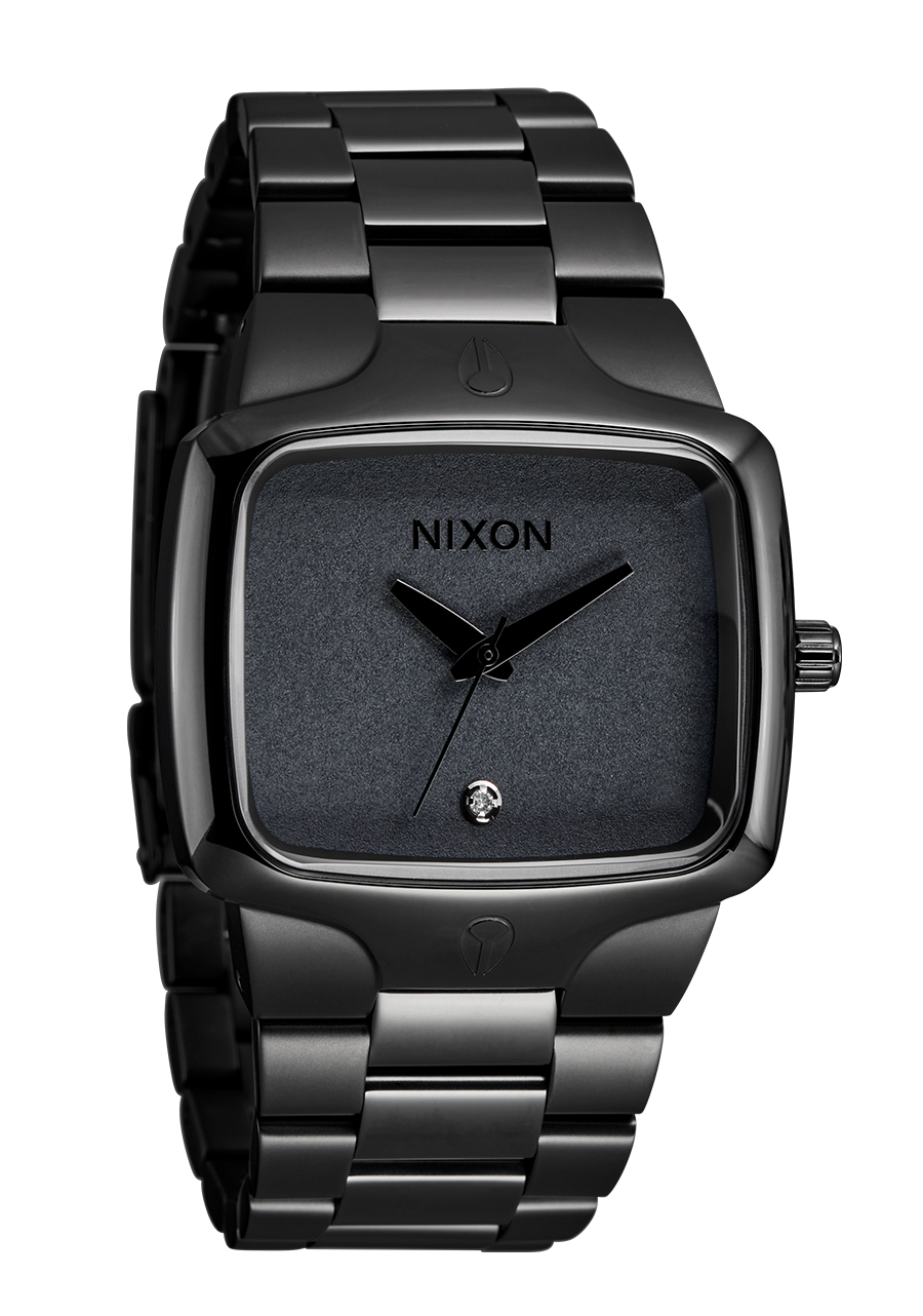 TV-förmiges Gehäuse mit gewölbtem Glas und einem Diamanten auf der 6-Uhr-Position.