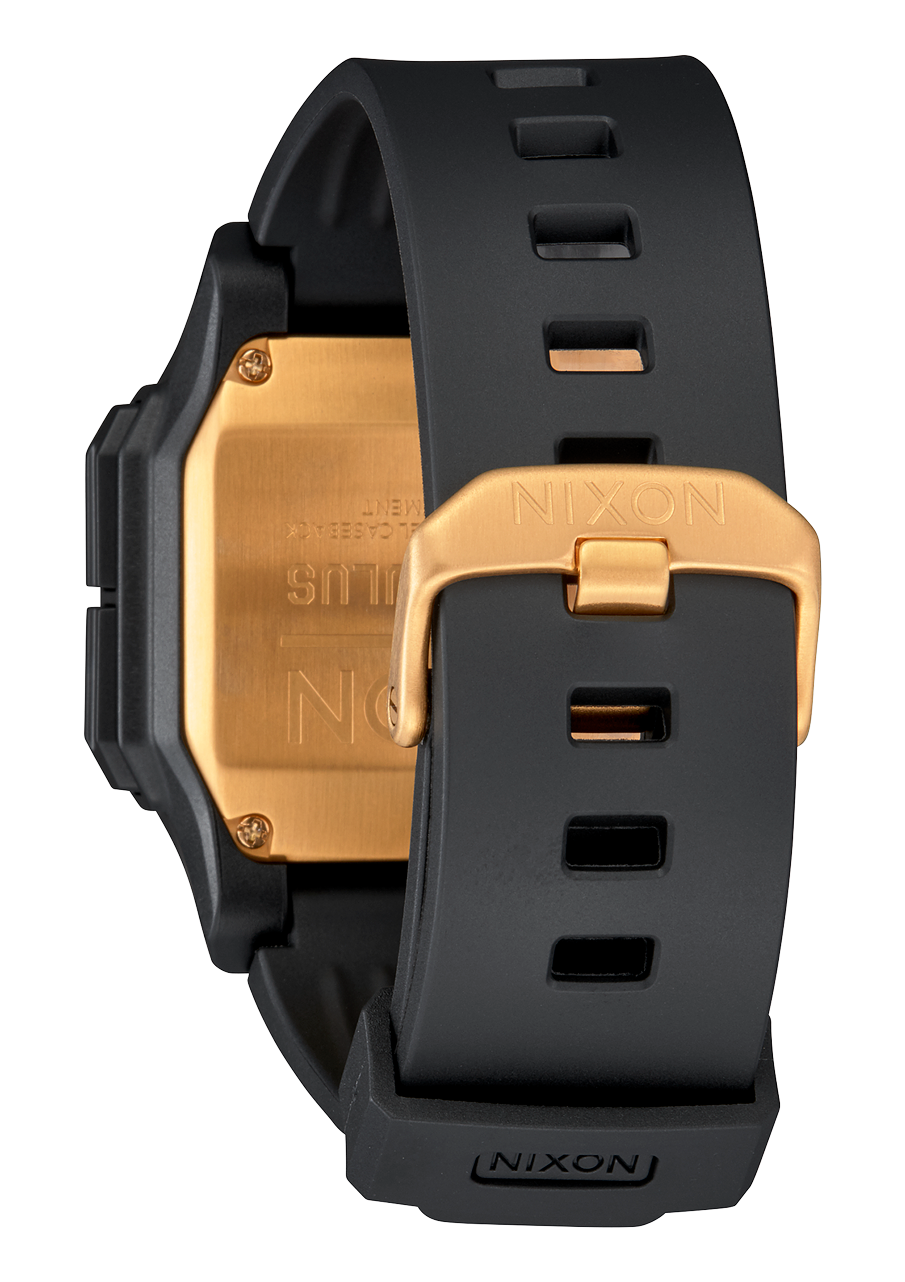 Die Nixon Regulus Uhr verfügt über ein individuell anpassbares, hochkontrastreiches digitales LCD-Display mit einer verstellbaren LED-Hintergrundbeleuchtung, was das Ablesen bei verschiedenen Lichtverhältnissen erleichtert. Das Display ist so gestaltet, dass es sehr gut lesbar ist, und die Hintergrundbeleuchtung erhellt den gesamten Bildschirm, was eine klare Sichtbarkeit in dunklen Umgebungen gewährleistet.