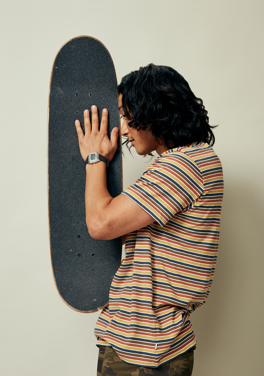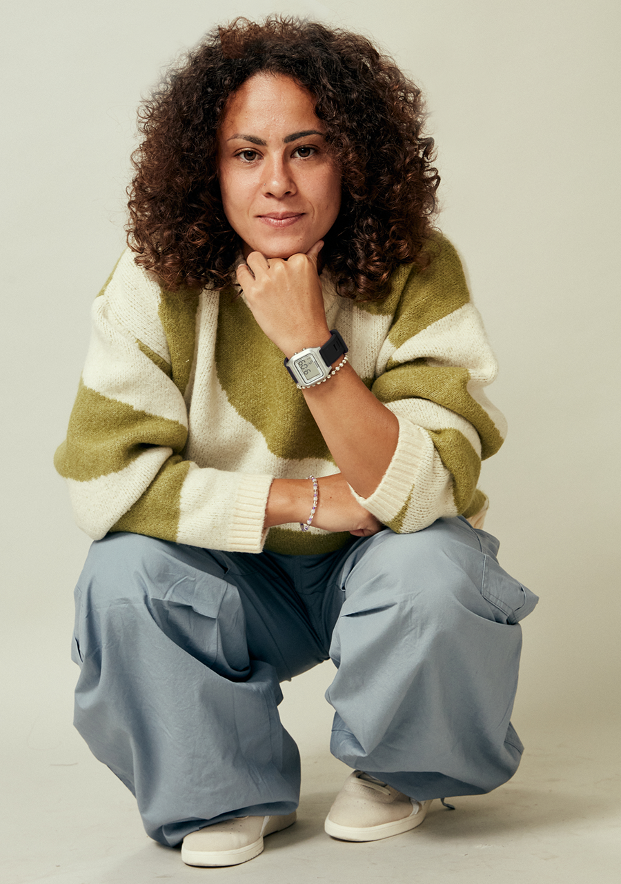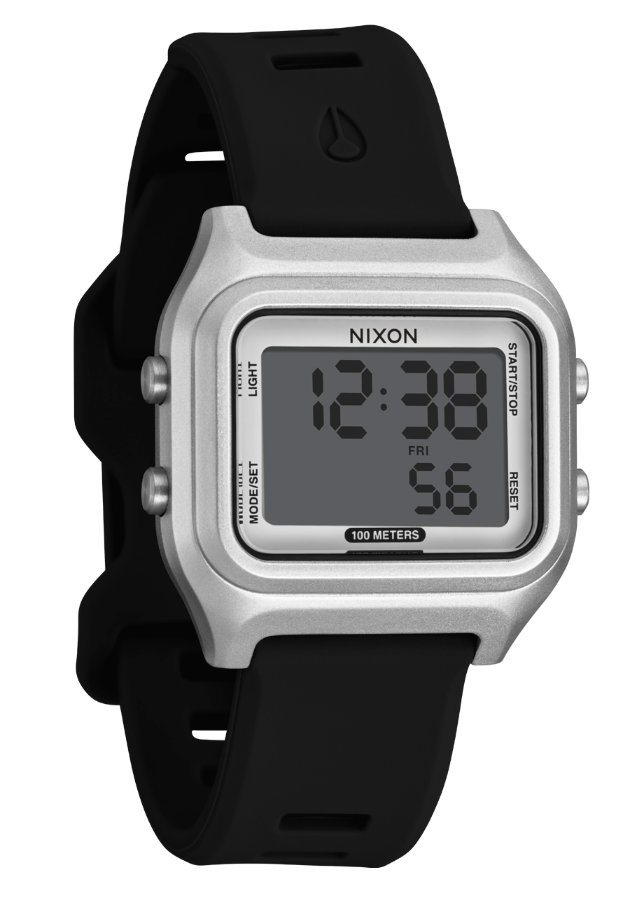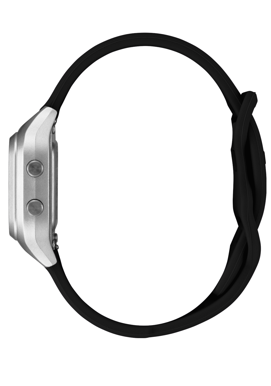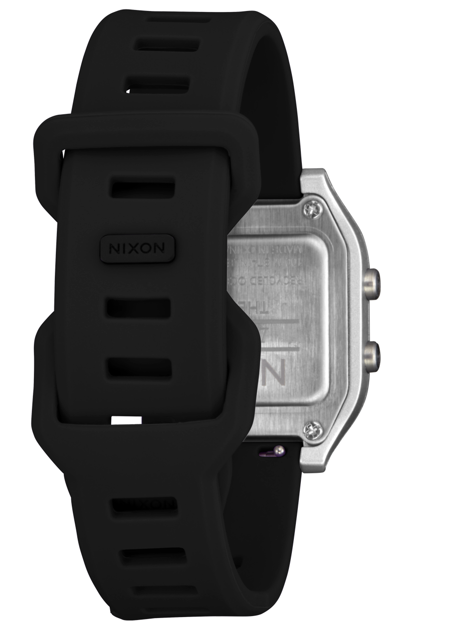 36,5 mm Gehäuse aus maßgefertigtem recyceltem Kunststoff und Edelstahl-Drücker mit einer Wasserdichtigkeit von 100 Metern / 10 ATM. Kommt mit einem verschraubten Edelstahl-Gehäuseboden.