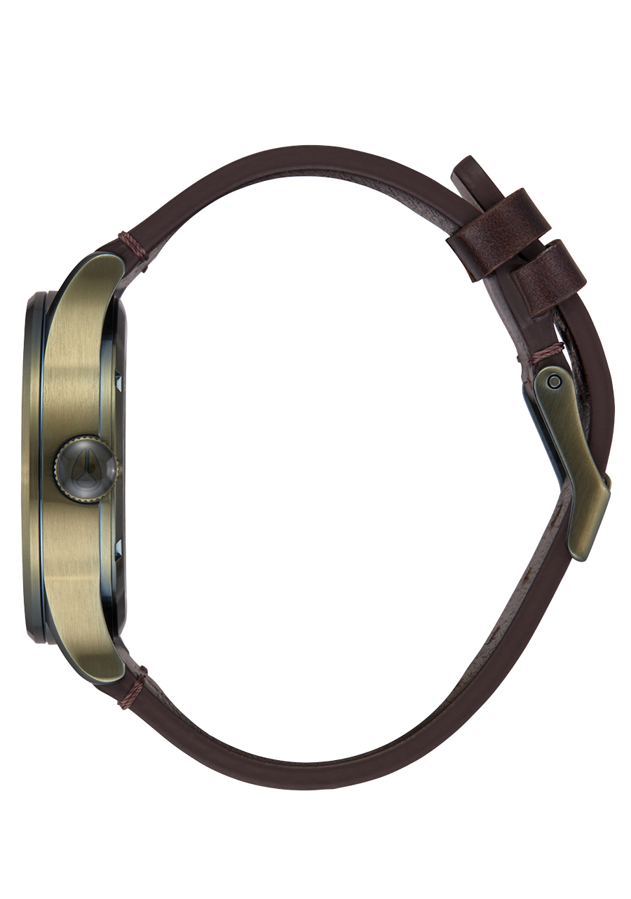 Die Sentry Lederuhr verwendet ein japanisches Miyota 0S20 Quarz-Uhrwerk mit drei Zeigern und einer zweisprachigen Tag- und Datumsanzeige (Englisch/Spanisch).