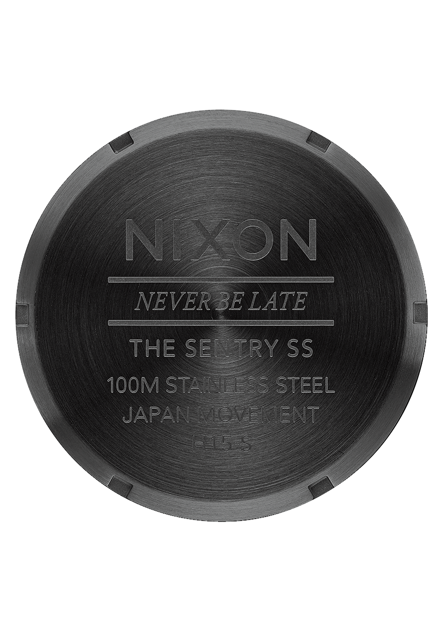 Die Nixon Sentry Edelstahl-Uhr verwendet ein japanisches Miyota 2305 Quarz-Uhrwerk mit 3 Zeigern und verfügt über eine zweisprachige Wochentag- und Datumsfunktion in Englisch und Spanisch.