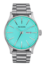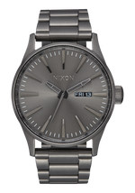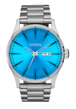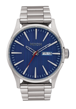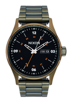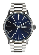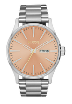 Die Nixon Sentry Edelstahl-Uhr verwendet ein japanisches Miyota 2305 Quarz-Uhrwerk mit 3 Zeigern und verfügt über eine zweisprachige Wochentag- und Datumsfunktion in Englisch und Spanisch.