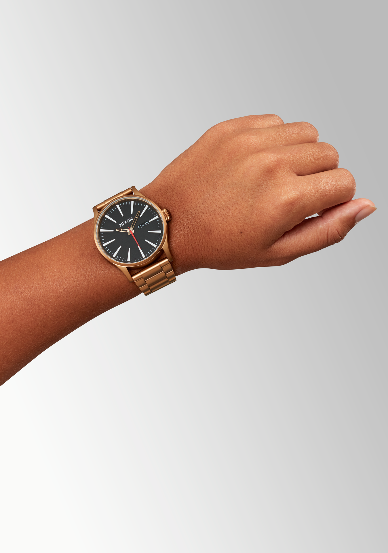 Aufgesetzte Indizes verleihen dem Zifferblatt dieser klassischen Alltagsuhr Tiefe und Dimension.