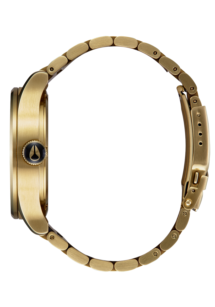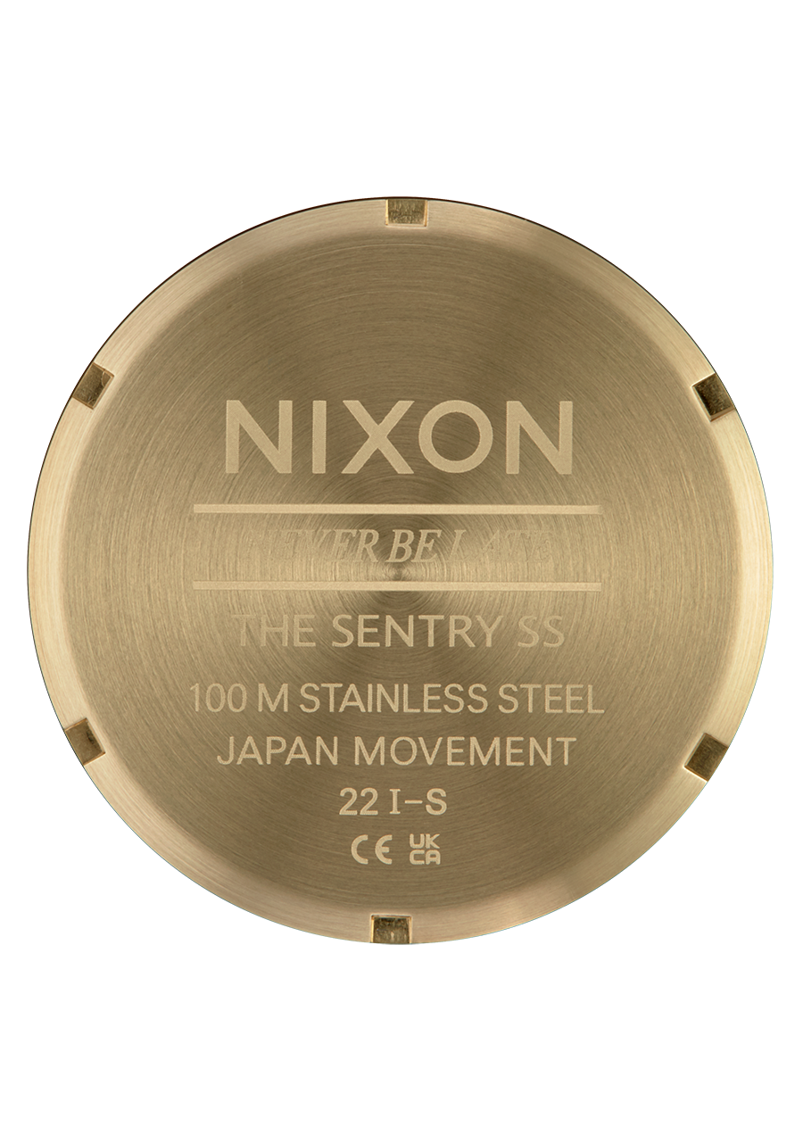 Die Nixon Sentry Edelstahl-Uhr verwendet ein japanisches Miyota 2305 Quarz-Uhrwerk mit 3 Zeigern und verfügt über eine zweisprachige Wochentag- und Datumsfunktion in Englisch und Spanisch.