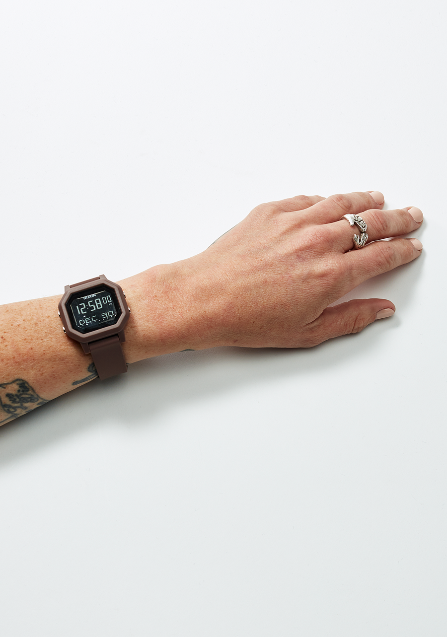 38mm maßgefertigtes, spritzgegossenes Gehäuse aus verstärktem recyceltem Ozeanplastik mit einer Wasserdichtigkeit von 100 Metern / 10 ATM. Ausgestattet mit maßgefertigten, dichtungsfreien Edelstahl-Drückern, verschraubtem Edelstahl-Gehäuseboden und verschraubten Edelstahl-Bügeln.