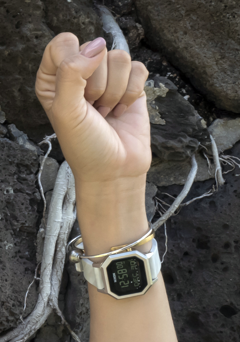 Der Nixon Siren Edelstahl verwendet ein spezielles Edelstahlgehäuse mit Edelstahl-Schraubstangen und Drückern sowie ein maßgeschneidertes, ultra-softes Silikonarmband mit einer festen Edelstahl-Schließe und Schraubstangen. Die Uhr ist bis zu 100 Metern / 10 ATM wasserdicht, was sie äußerst langlebig für Wasser- und Sportszwecke macht.