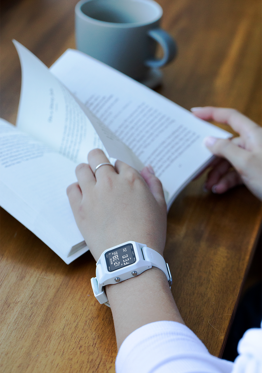 39mm maßgefertigtes, spritzgegossenes Gehäuse aus faserverstärktem, recyceltem Ozeanplastik mit einer Wasserdichtigkeit von 100 Metern / 10 ATM. Ausgestattet mit Edelstahl-Drückern, gehärtetem Mineralglas, massivem Edelstahl-Schraubboden und Schraubstiftanstößen.