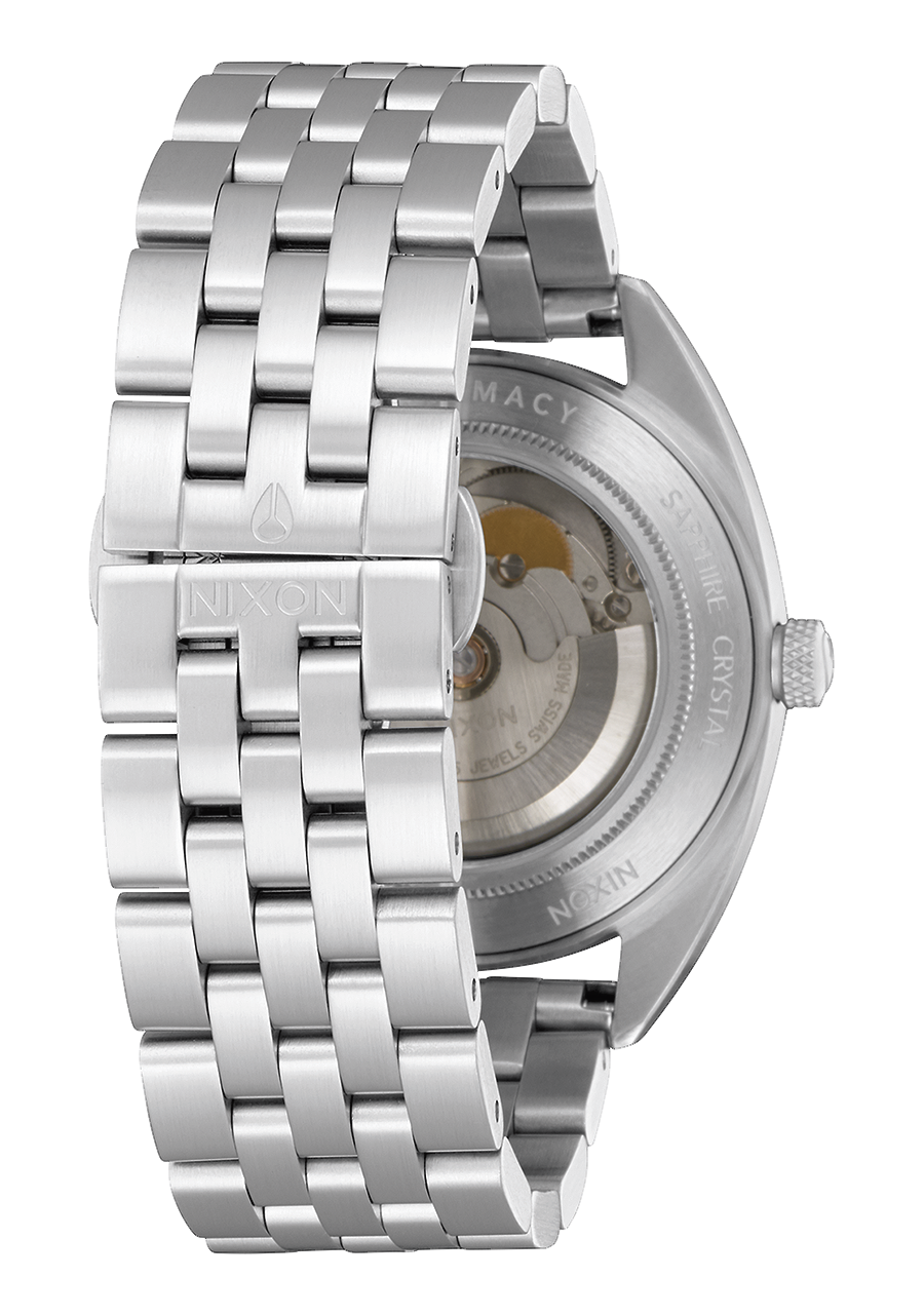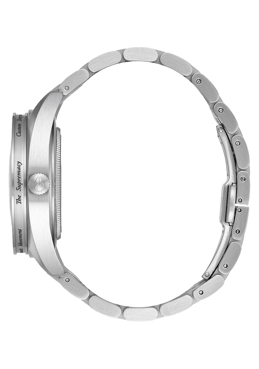 40 mm maßgefertigtes Gehäuse aus massivem Edelstahl und feste Lünette mit einer Wasserdichtigkeit von 100 Metern / 10 ATM. Das Gehäuse verfügt über eine kratzfeste Beschichtung und die Lünette ist seitlich graviert. Enthält eine verschraubte Krone mit dreifacher Dichtung und Rändelstruktur sowie ein gewölbtes Saphirglas mit Antireflexbeschichtung auf der Unterseite. Jeder verschraubte Edelstahl-Gehäuseboden ist einzeln nummeriert und besitzt ein gehärtetes Mineralglasfenster sowie Federsteganstöße.