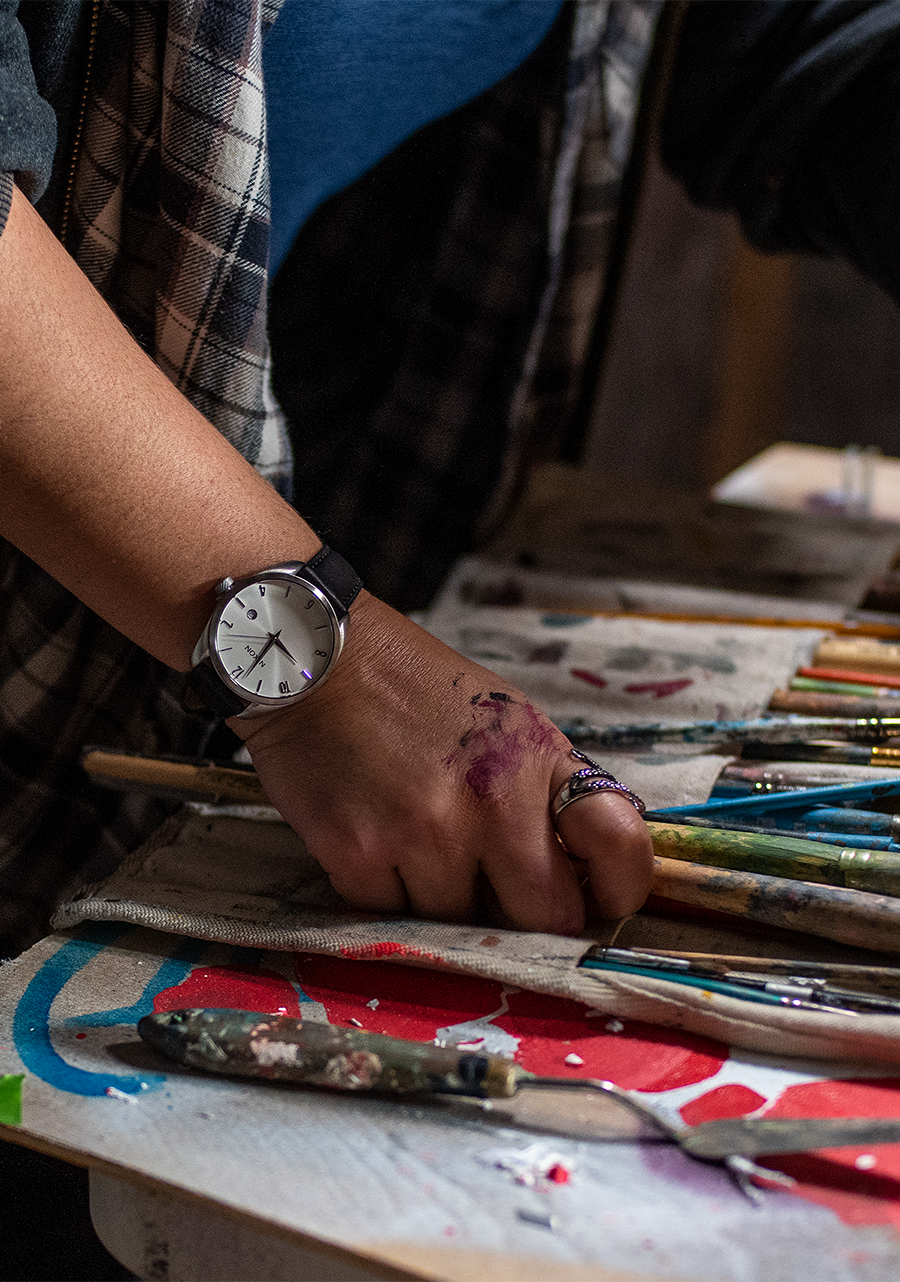 Vom pflanzlich gegerbten Leder mit umlaufenden Nähten bis hin zur Edelstahlschleife und der Schließe mit Nixon-Prägung ist die schlanke Silhouette von Thalia eine wahre Augenweide.