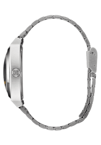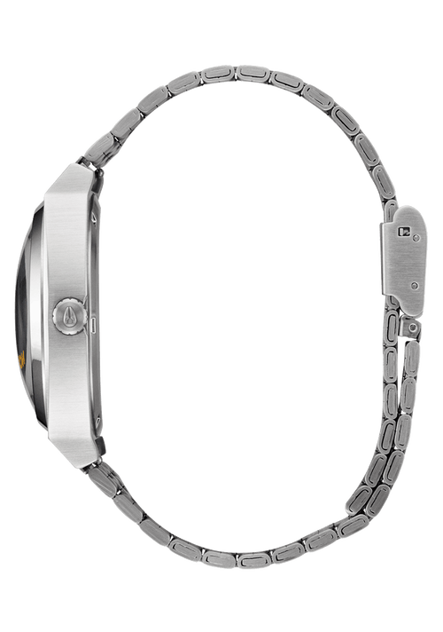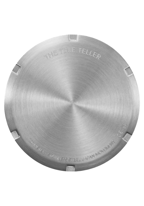 37mm maßgefertigtes Gehäuse aus massivem Edelstahl mit einer Wasserdichtigkeit von 100 Metern / 10 ATM. Ausgestattet mit einer festen Lünette aus massivem Edelstahl, gehärtetem Mineralglas, dreifach abgedichteter Edelstahlkrone und verschraubtem Edelstahlgehäuseboden.