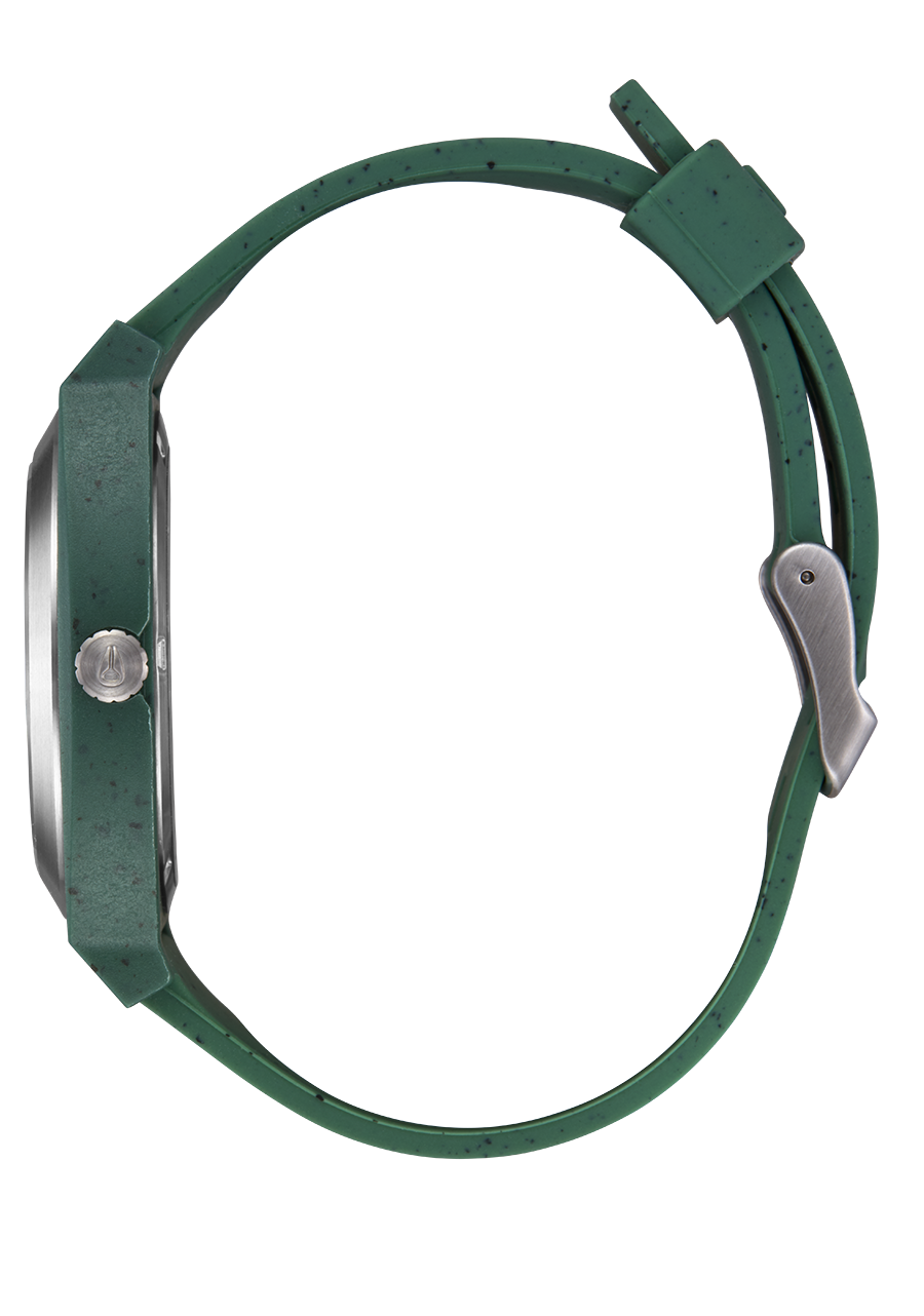 39,5 mm Gehäuse aus recyceltem Kunststoff und fester Lünette aus massivem Stahl mit einer Wasserdichtigkeit von 100 Metern / 10 ATM. Ausgestattet mit einem gehärteten Mineralglas, einer dreifach abgedichteten Edelstahlkrone, einem verschraubten Edelstahlboden und Federsteganstößen.