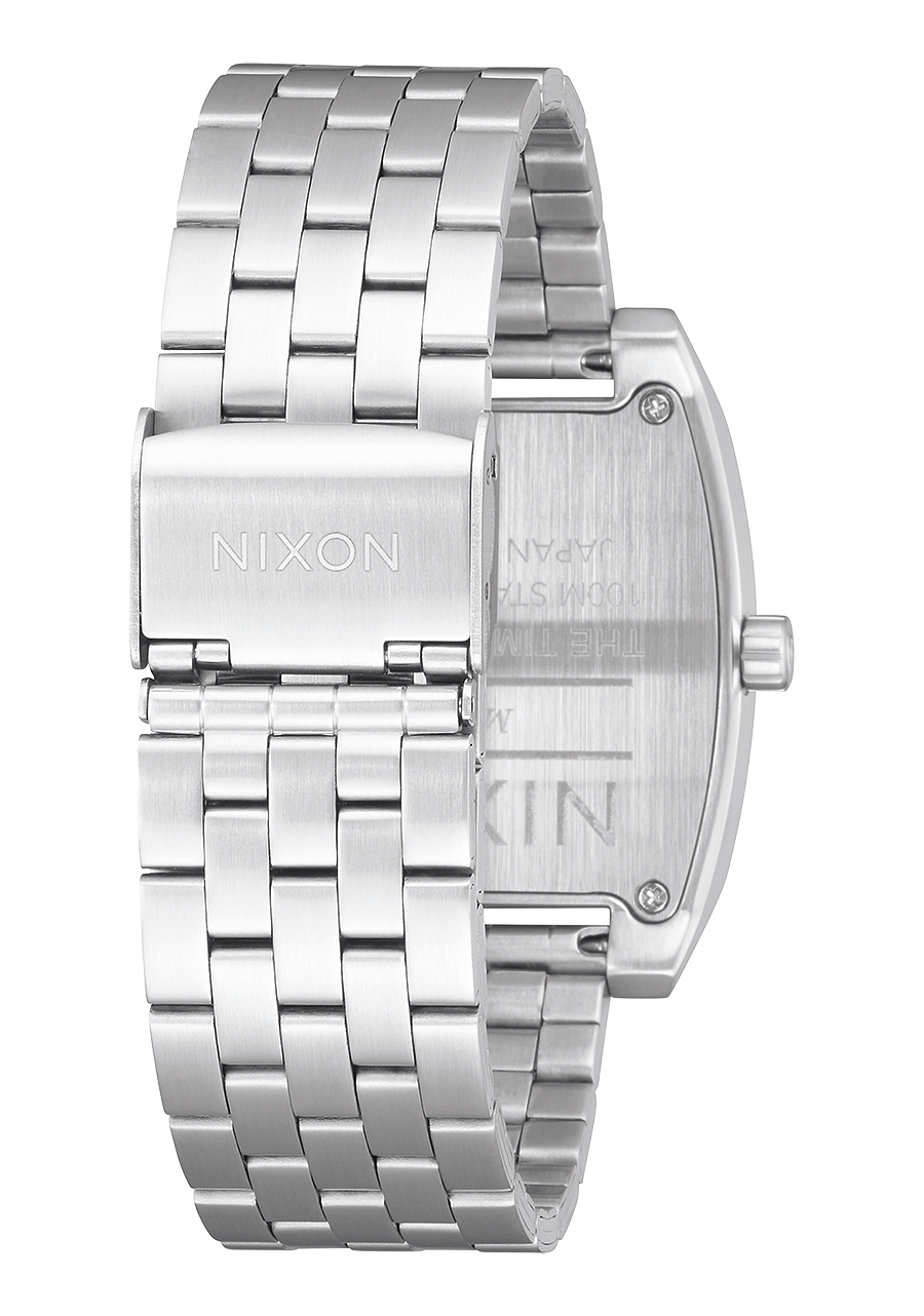 37 mm, 100 Meter/10 ATM, maßgefertigtes quadratisches Edelstahlgehäuse, gehärtetes Mineralglas, Edelstahl-Schraubboden und Federsteganstöße.